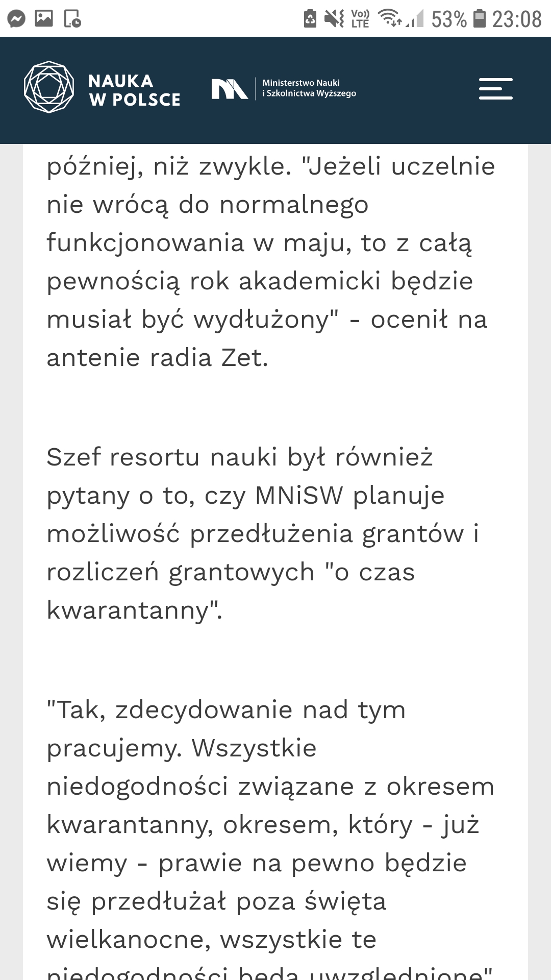 https://titansgo....67b01b.jpg Co ten gościu mamrocze tam. Roku akademickiego nie da się przedłużyć, bo trwa od 1 pazia do 30 września, co najwyżej można przedłużyć okres zajęć uczelnianych. Tylko nie ma to racji bytu, bo jeśli zajęcia zajmą dodatkowo lipiec i połowę sierpnia (optymistycznie), to sesja poprawkowa będzie się chyba liczyć do normalnej xd i co wtedy z wolnym i z rekrutacją i ...ahhh nie chcę o tym nawet myśleć xD